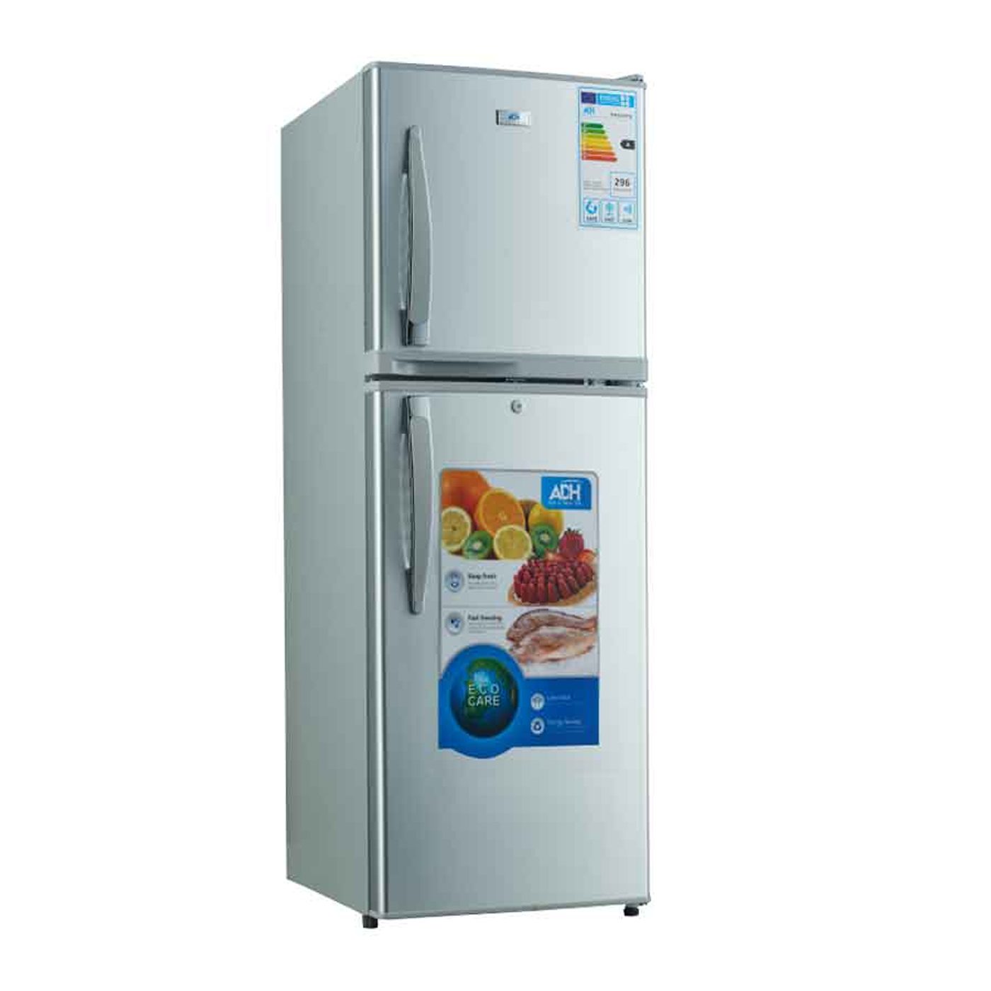 This ADH stainless steel fridge freezer comes in a classic set-up, so with a top-mounted freezer section and fridge underneath.