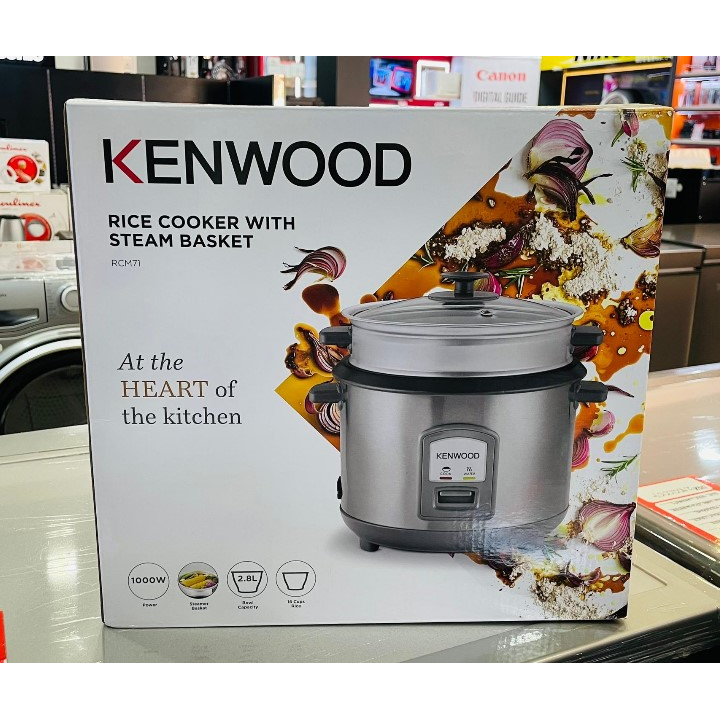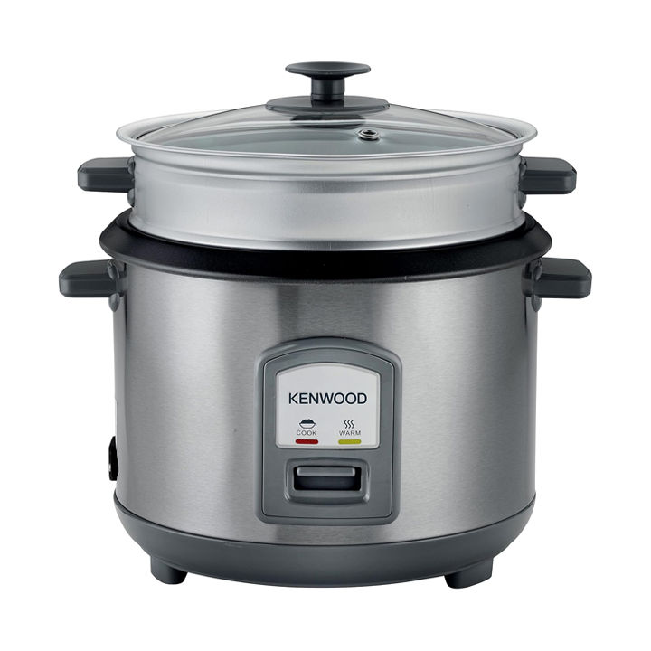 KENWOOD 2-in-1 Rice Cooker 2.8L 16-Cups Rice with Food Steamer Basket, Non-Stick Cooking Pot, Temepered Glass Lid, Warm/Cook Lights, Spatula Holder, Detachable Cord RCM71.000SS Silver
