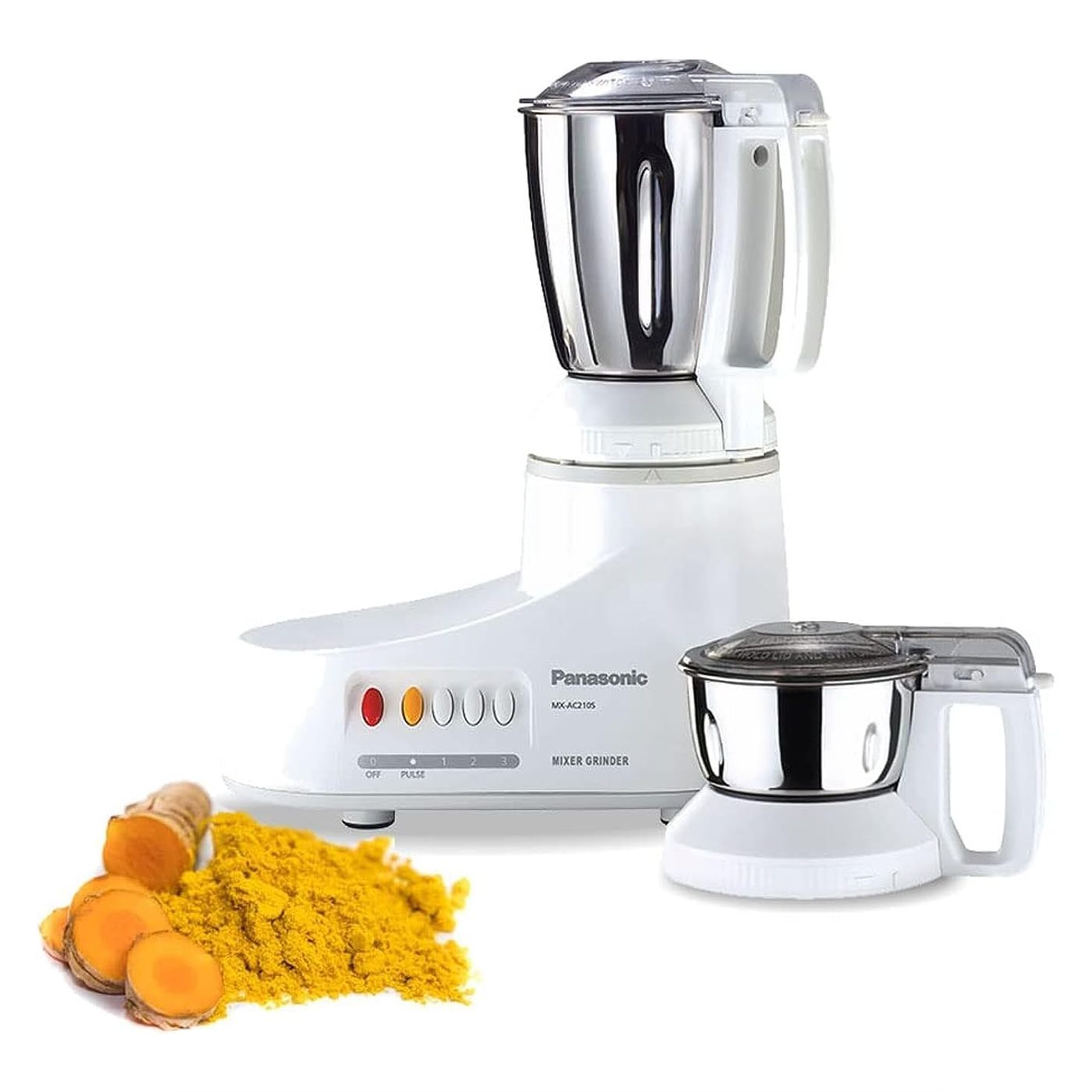 Panasonic Mixer Grinder With 2 Jar MX-AC210 makes for the most versatile partner in the kitchen. It features 2 steel jars built to take care of any grinding and juicing needs. These jars have transparent, see-through lids to check the blending results without opening. They feature ergonomic handles for optimum convenience. The 1000W heavy-duty motor is designed to make every task quick and easy.