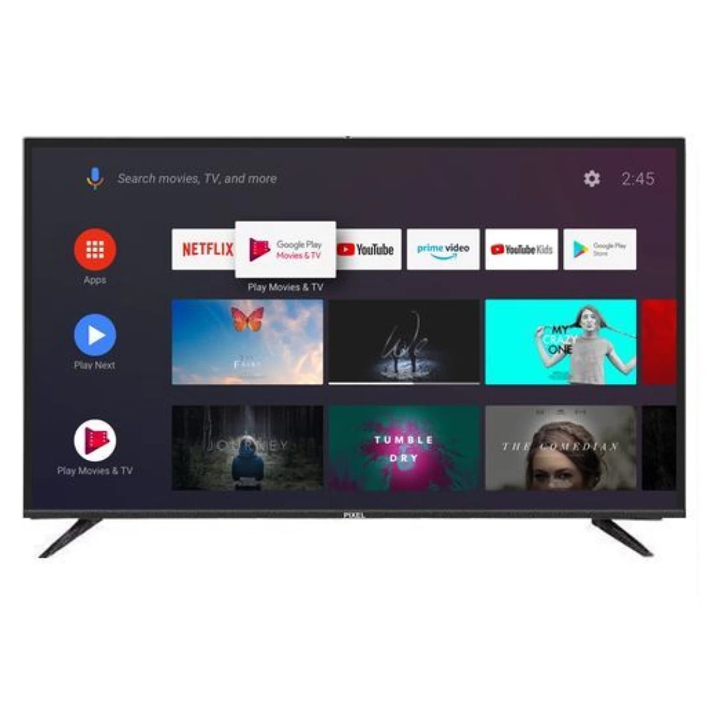 Pixel 40 Inch Android Smart TV gives a realistic touch to any content with its crystal clear picture quality. This Pixel TV has a 40 inchdisplay. The Pixel 40″ FHD Smart TV offers an immersive visual experience for the whole family. It displays images at Full HD resolution on a 40 inch screen. The result is distinct, vibrant, pin sharp visuals spread across a large and vast digital canvas. The visuals are accompanied by crisp, distortion free audio to offer a rich viewing experience.