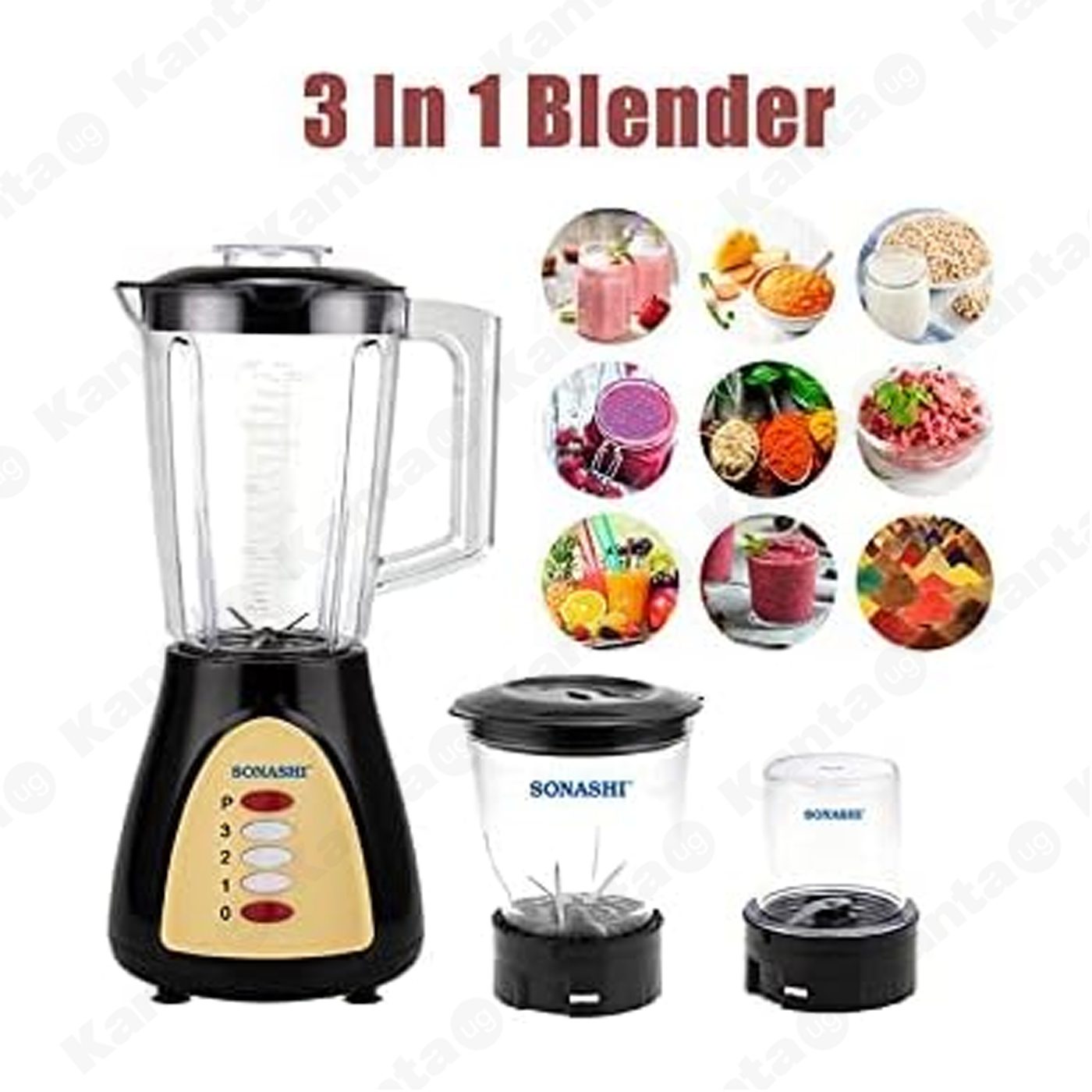- Portable Blender: Sonashi 3 in 1 mixer blender is an essential kitchen tool to speed up your work. It is a powerful blender for shakes and smoothies, mincing meat or vegetables, and fine-grinding the toughest ingredients.